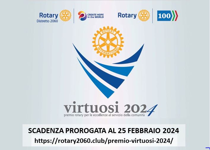 È stata prorogata al 25 febbraio la presentazione delle domande al premio Rotary “Virtuosi 2024”… Leggi tutto »Prorogato al 25 febbraio il bando del premio “Virtuosi 2024”